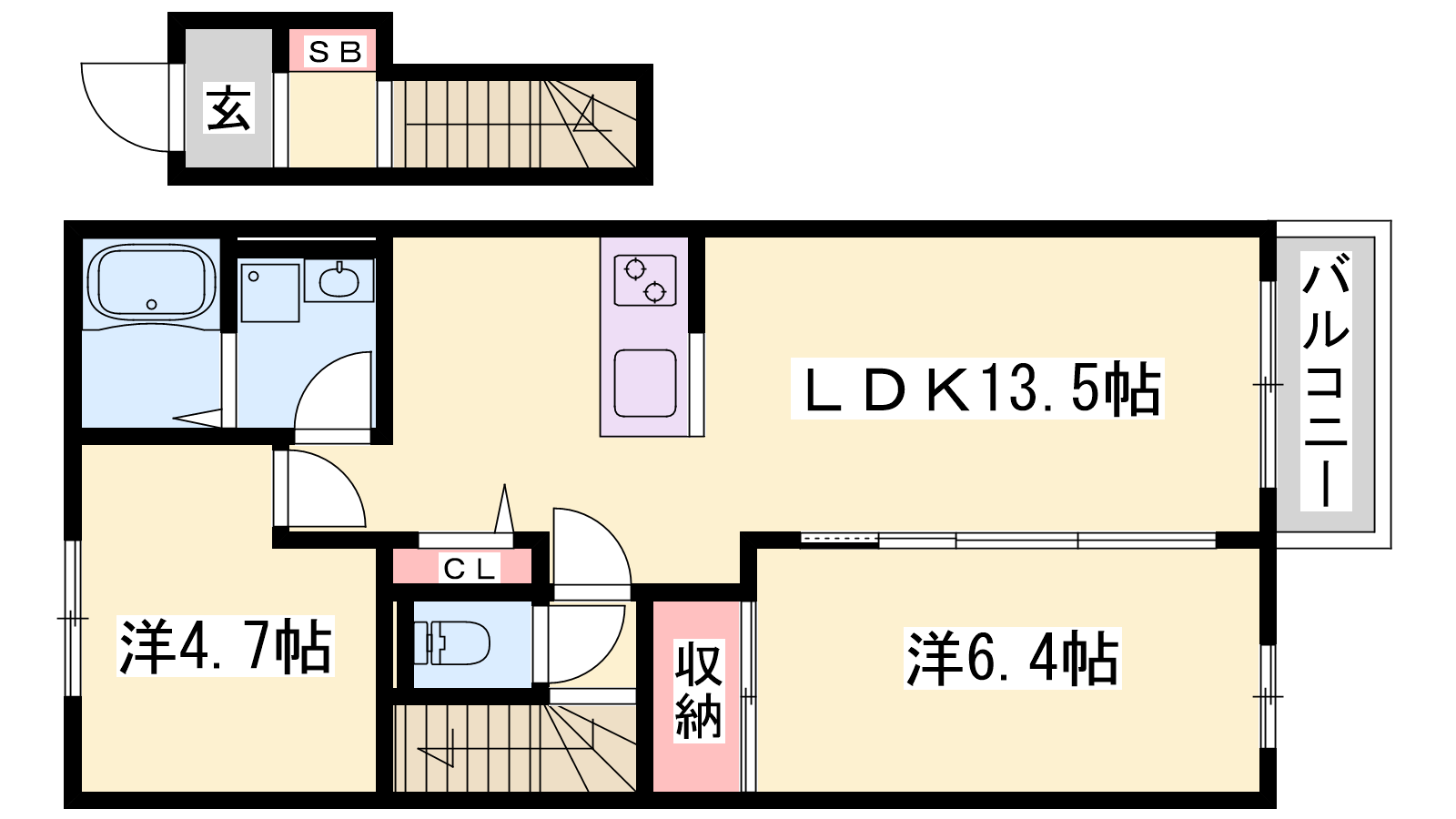 - LDK13.5帖、洋室6.4帖、洋室4.7帖