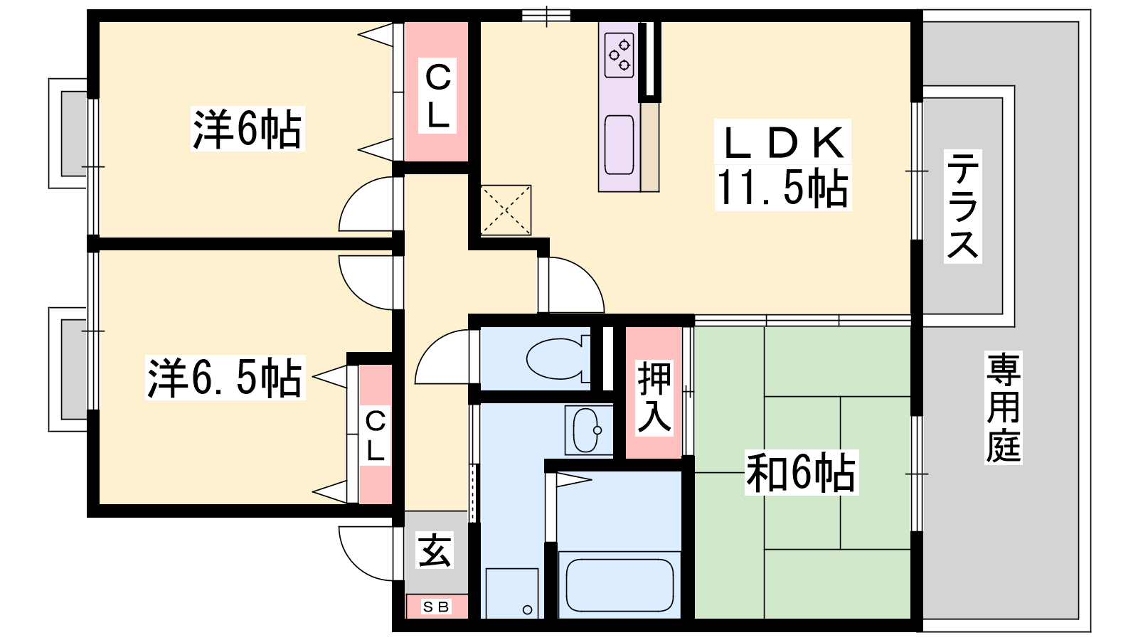 - LDK11.5帖、和室6帖、洋室6帖、洋室6.5帖