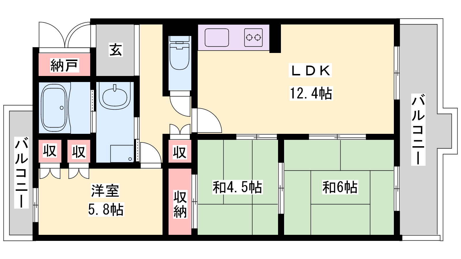 - LDK12帖、洋室6帖、洋室4.5帖、和室5.8帖