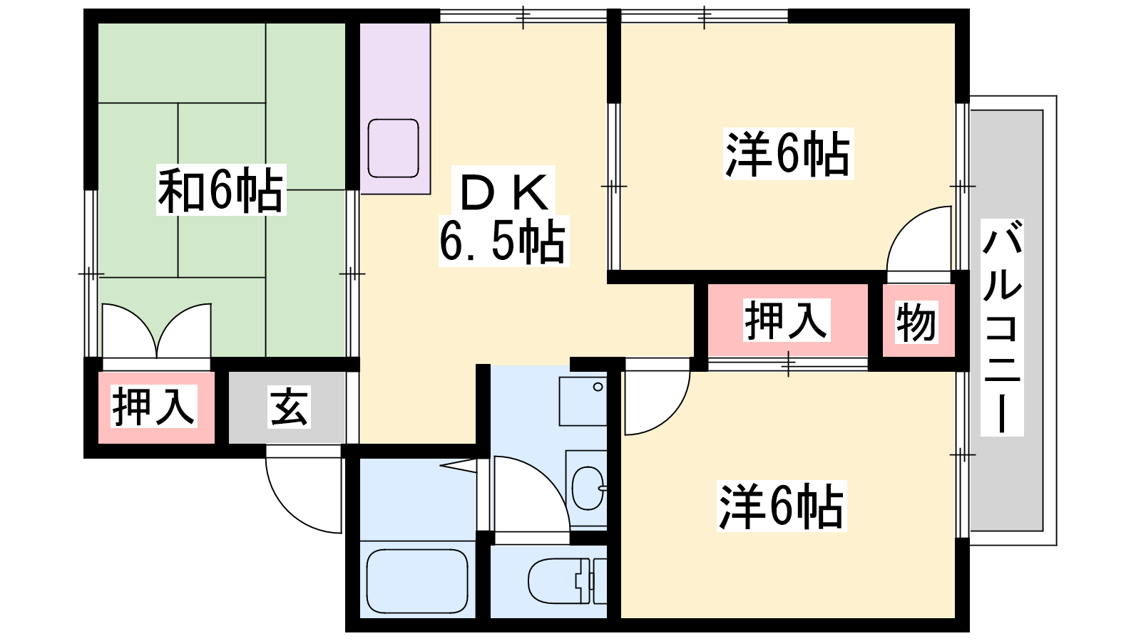 - DK6.5帖、洋室6帖、洋室6帖、和室6帖
