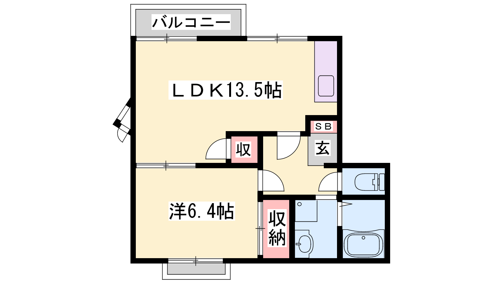 - LDK13.5帖、洋室6.4帖