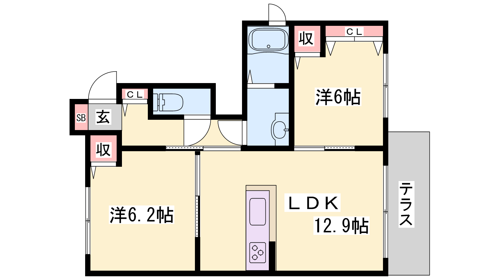 - LDK12.9帖、洋室6.2帖、洋室6帖