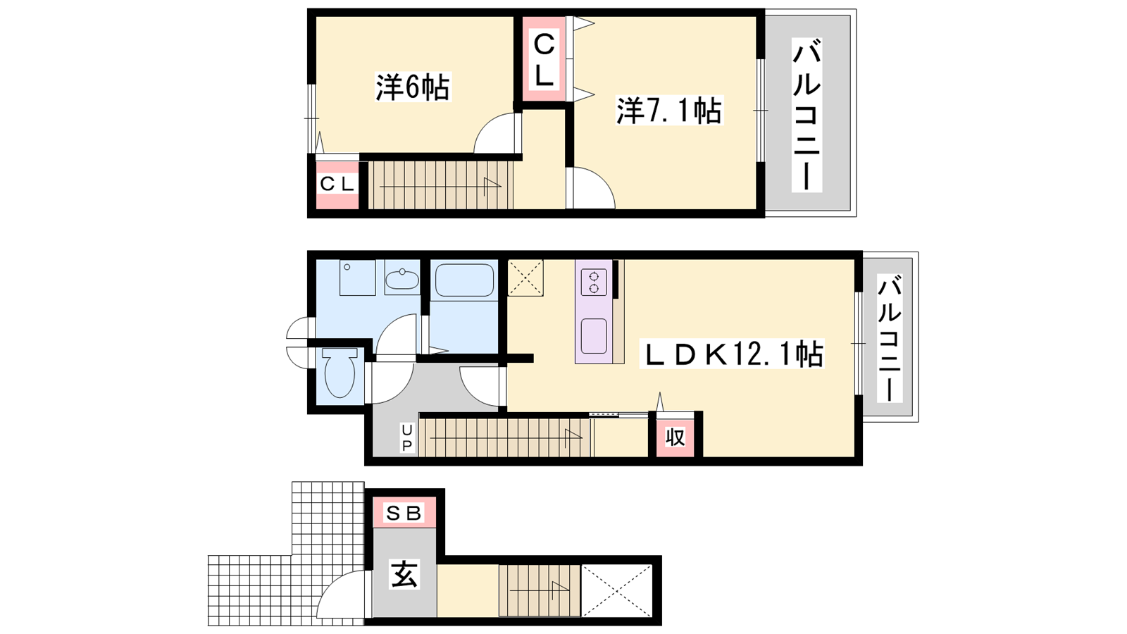 - LDK12.1帖、洋室7.1帖、洋室6帖