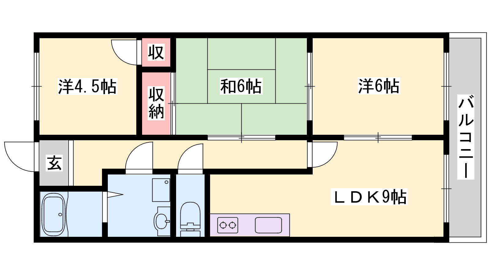 - LDK9帖、洋室6帖、和室6帖、洋室4.5帖
