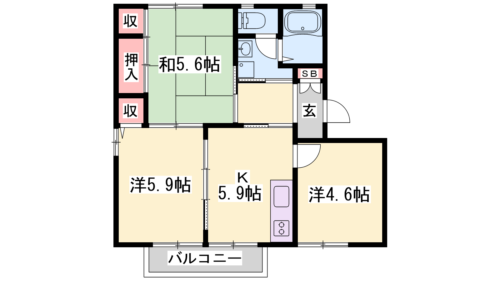 - K5.9帖、洋室5.9帖、和室5.6帖、洋室4.6帖