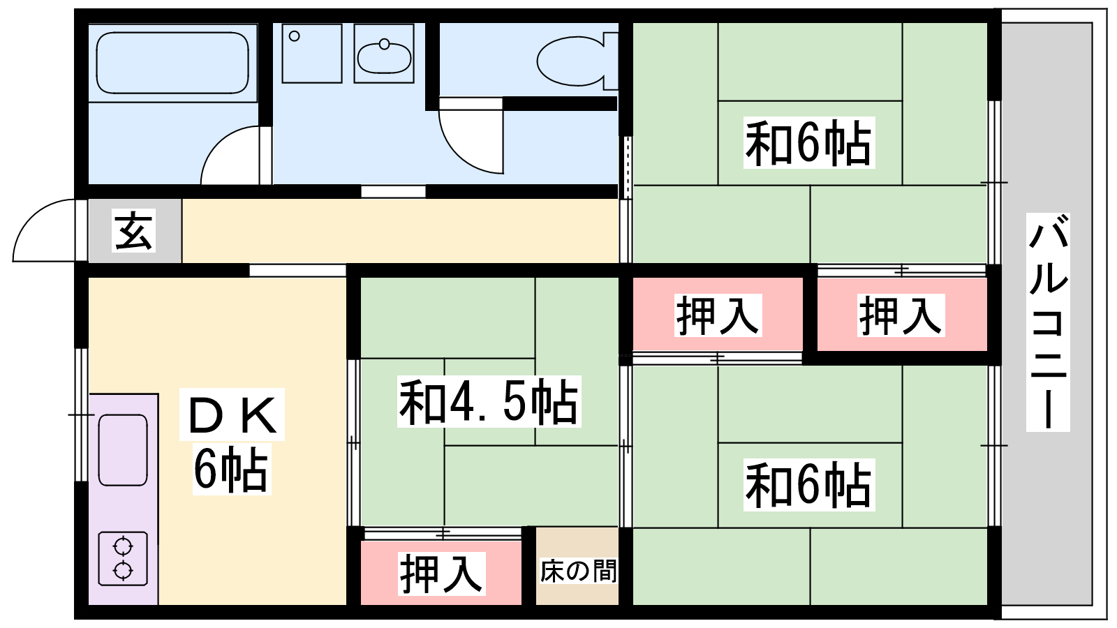 - DK6帖、和室6帖、和室6帖、和室4.5帖