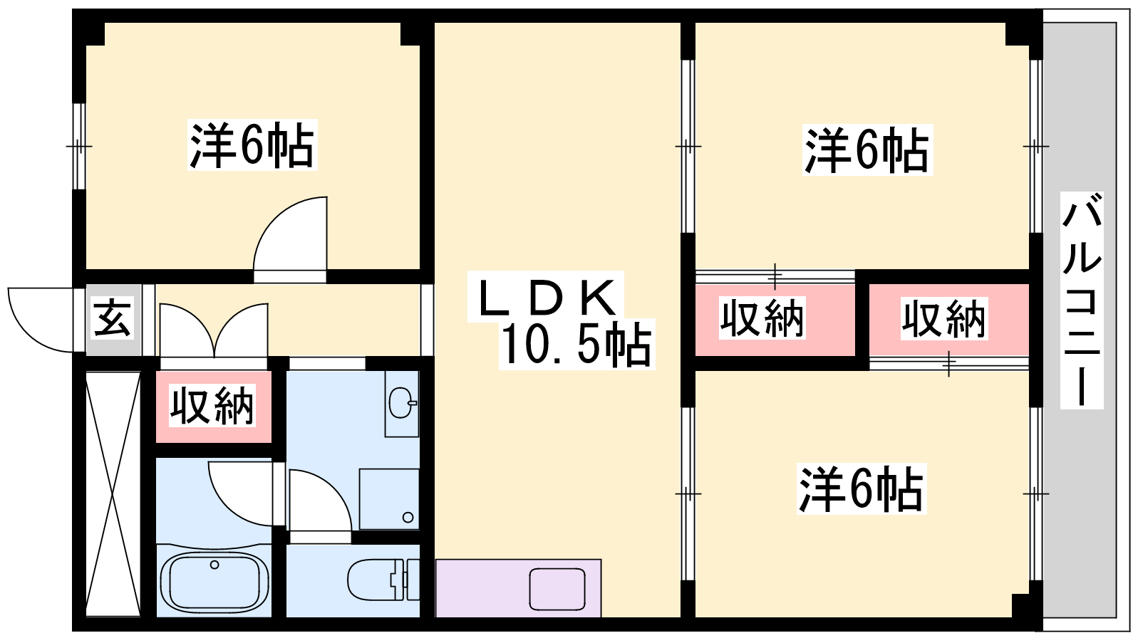 - LDK10.5帖、洋室6帖、洋室6帖、洋室6帖