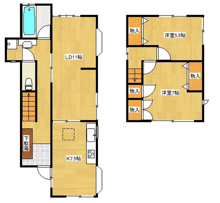 - LDK18.5帖、洋室7帖、洋室5.5帖