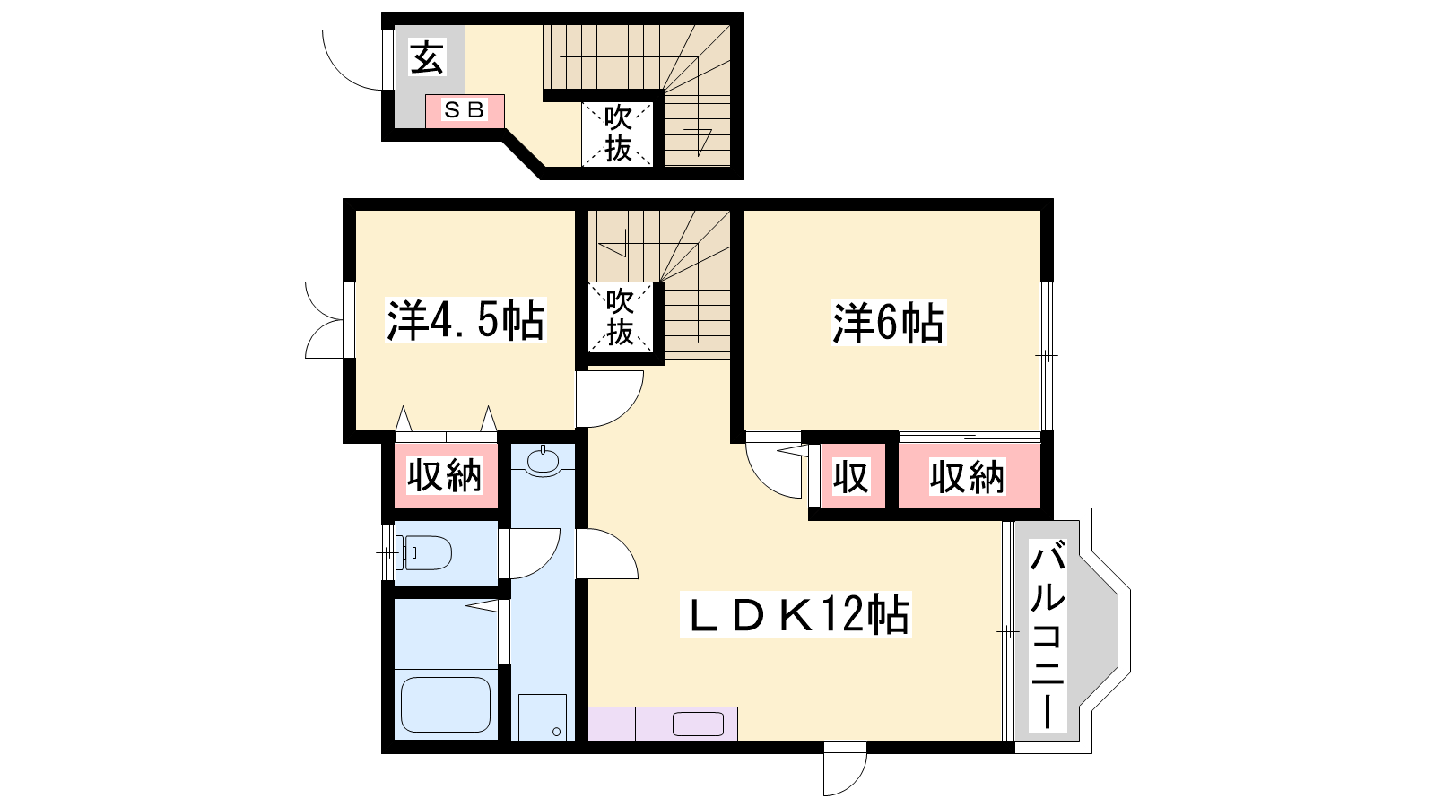 - LDK12帖、洋室4.5帖、洋室6帖