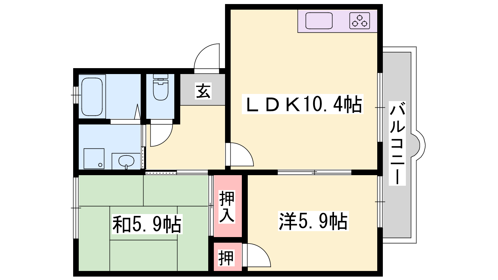 - LDK10.4帖、洋室5.9帖、和室5.9帖