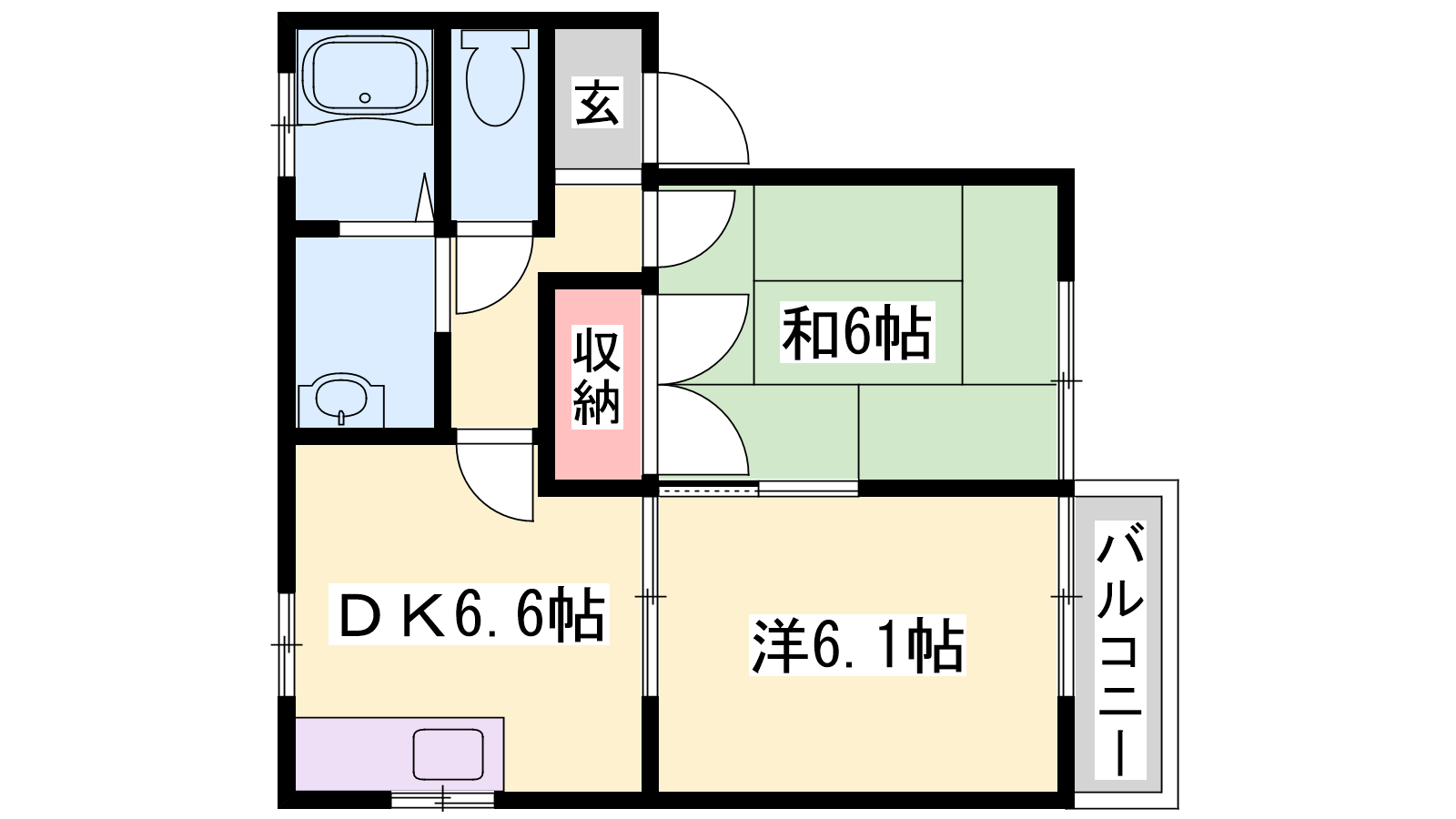 - DK6.6帖、洋室6.1帖、和室6.1帖