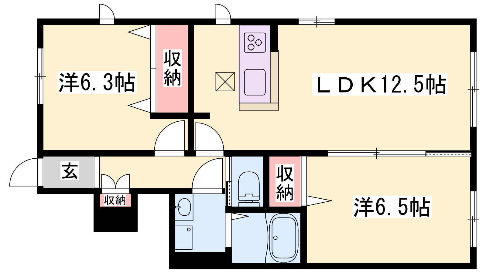- LDK12.5帖、洋室6.5帖、洋室6.3帖