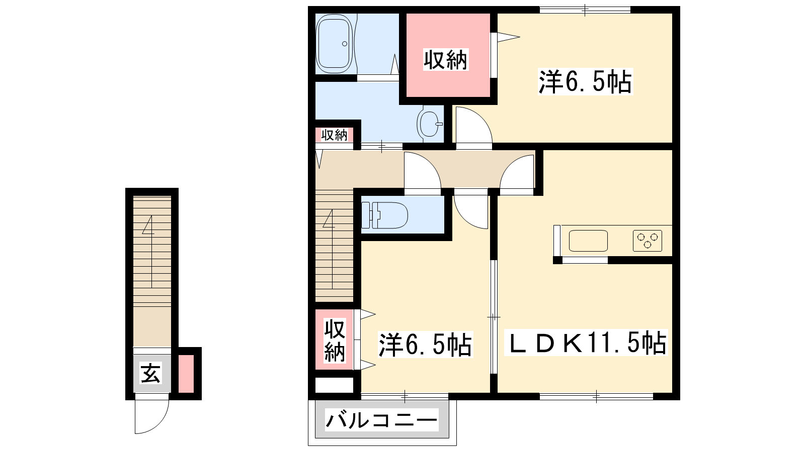- LDK11.5帖、洋室6.5帖、洋室6.5帖