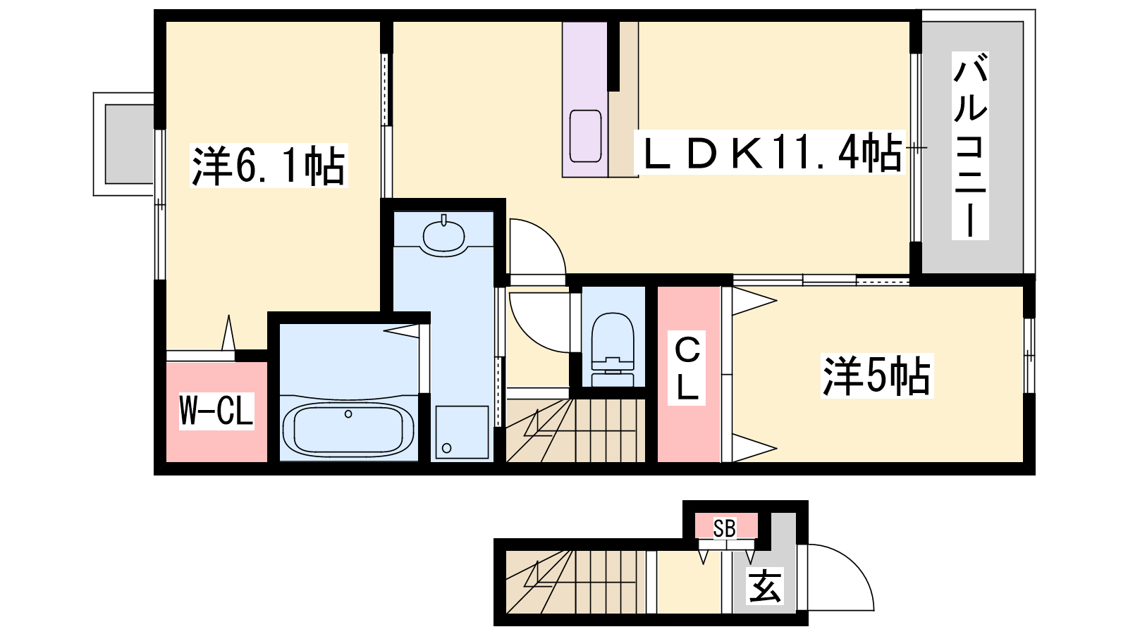 - LDK11.4帖、洋室6.1帖、洋室5帖