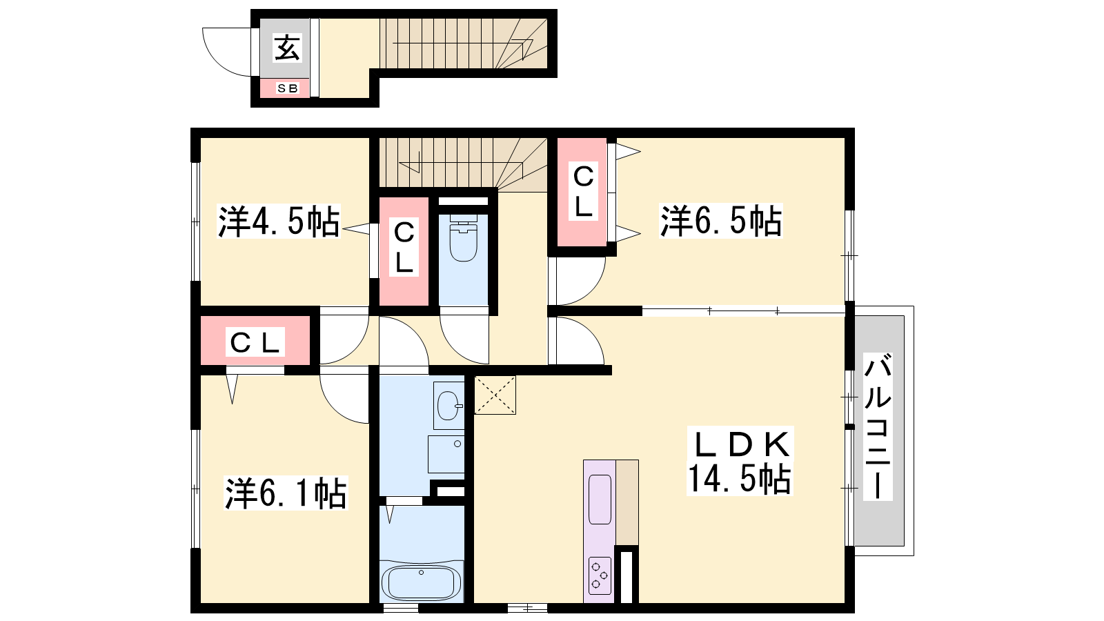 - LDK14.5帖、洋室6.1帖、洋室4.5帖、洋室6.5帖