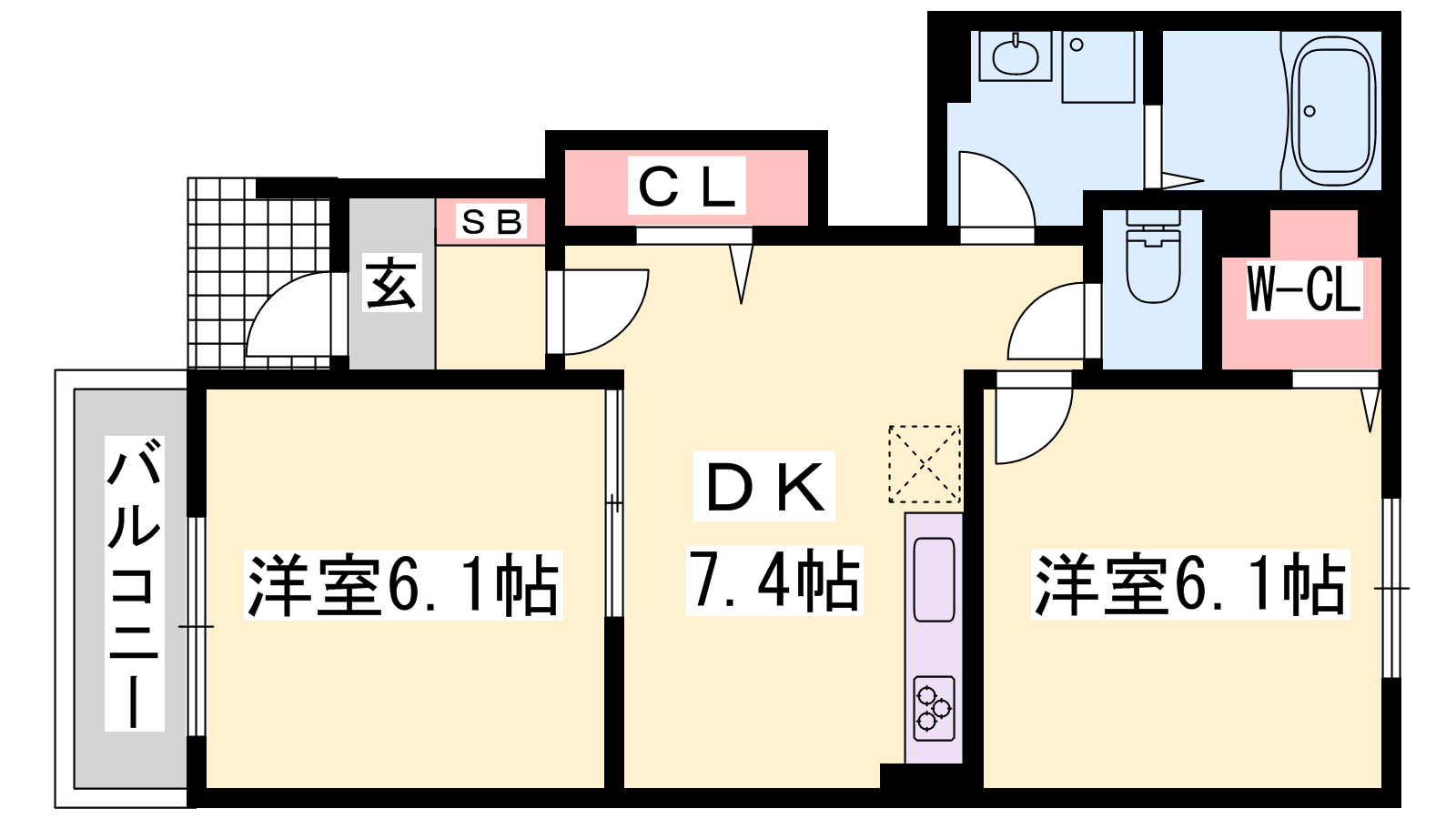 - DK7.4帖、洋室6.1帖、洋室6.1帖