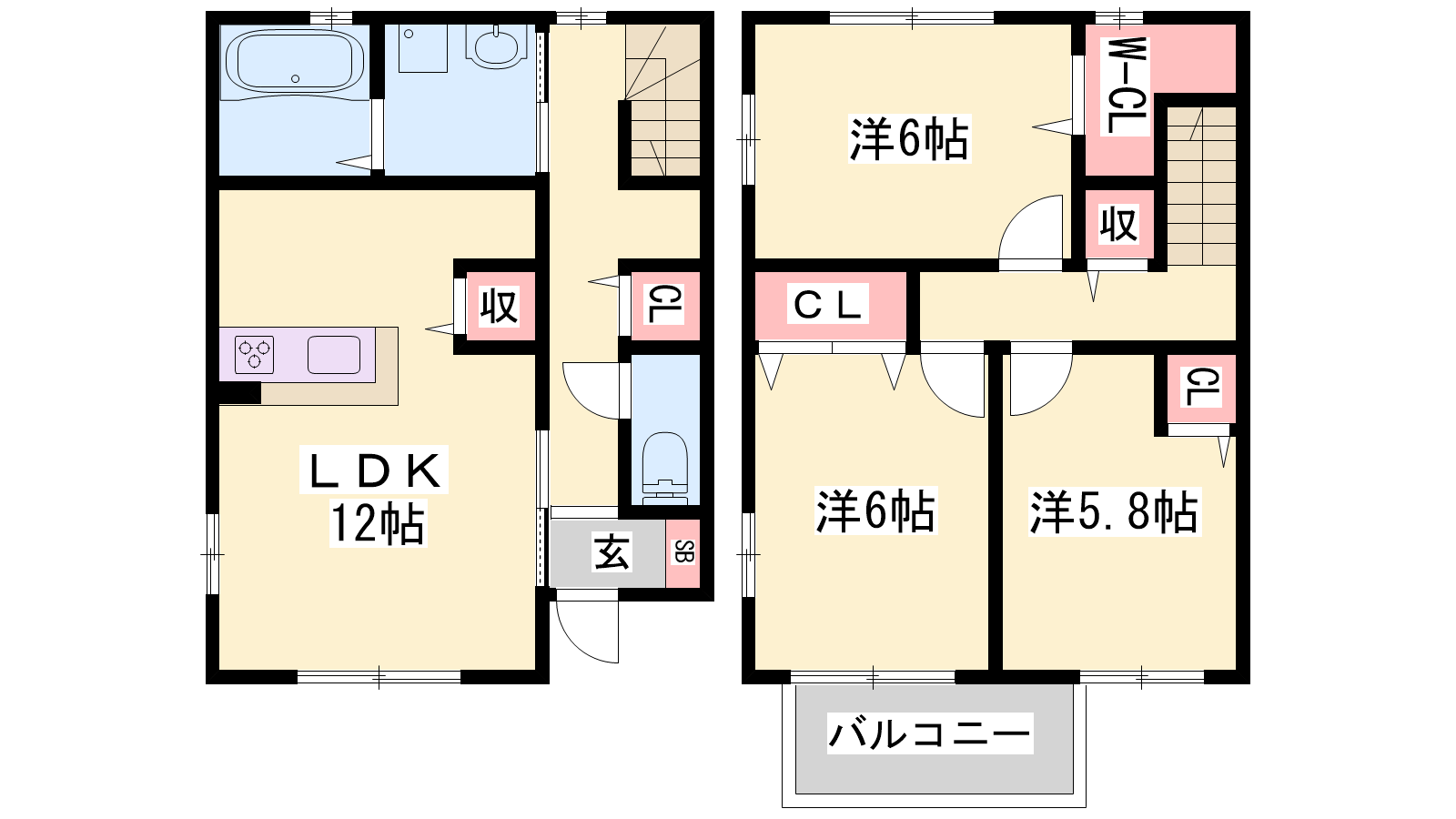 - LDK12帖、洋室6帖、洋室6帖、洋室5.8帖