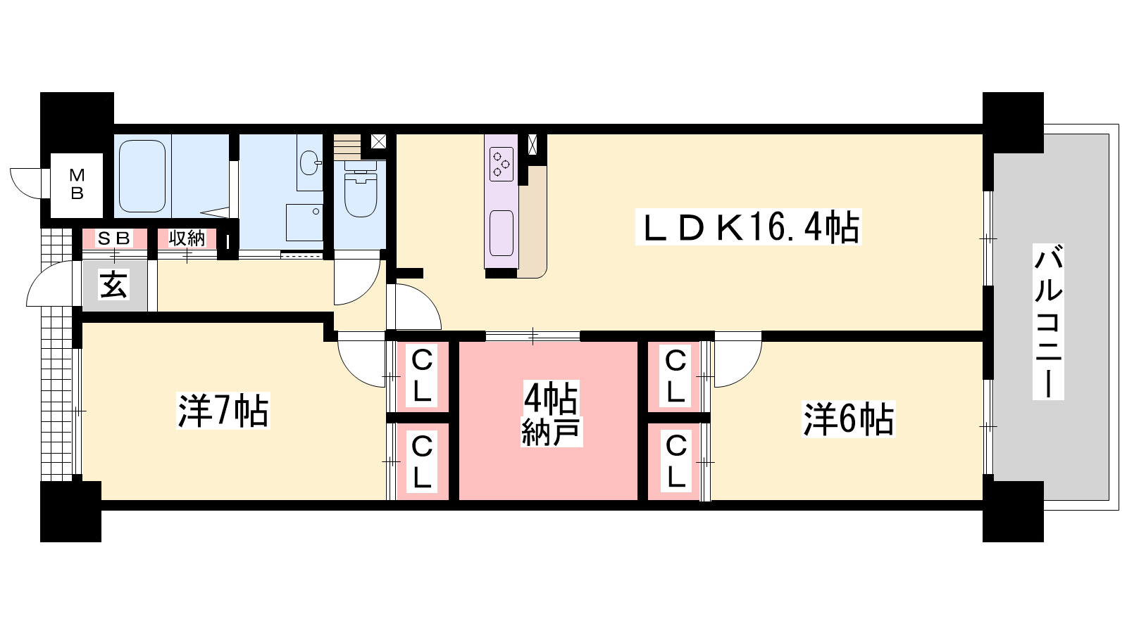 - LDK16.4帖、洋室7帖、洋室6帖、S4帖