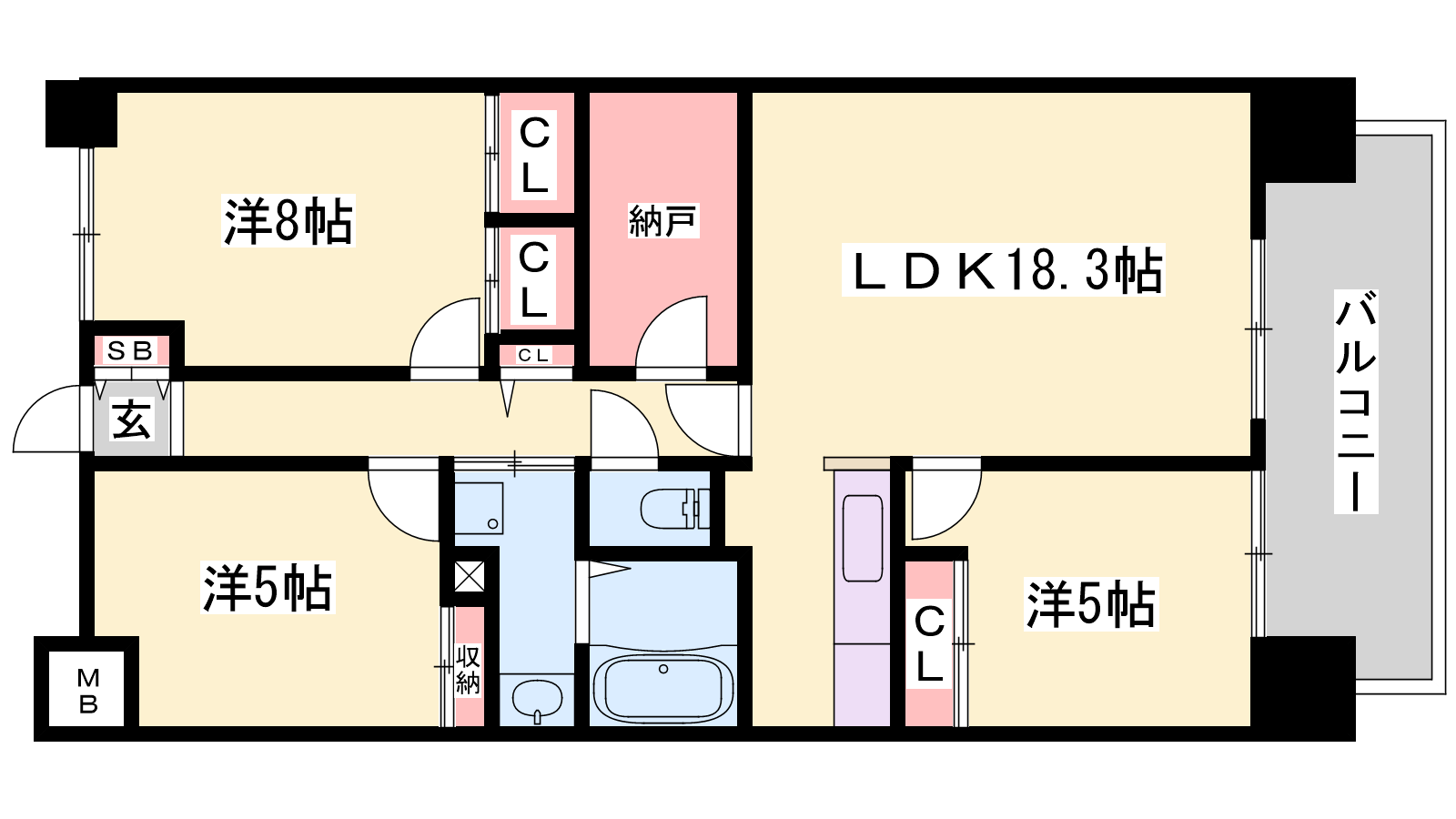 - LDK18.3帖、洋室8帖、洋室5帖、洋室5.1帖