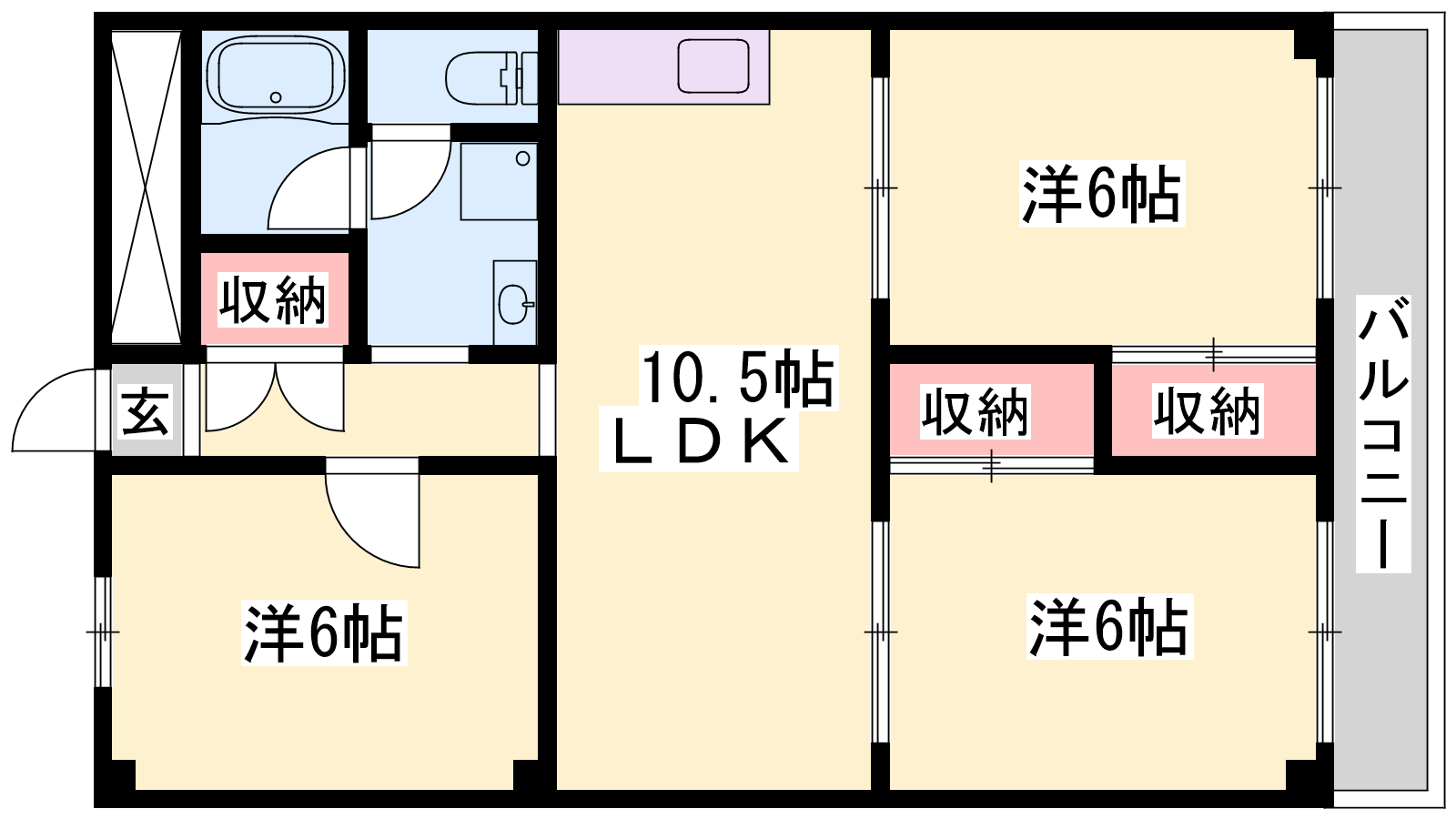 - LDK10.5帖、洋室6帖、洋室6帖、洋室6帖