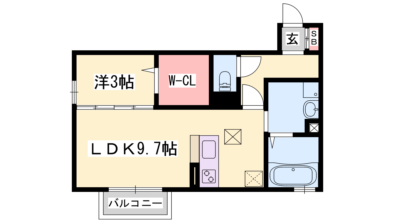 - LDK9.7帖、洋室3帖