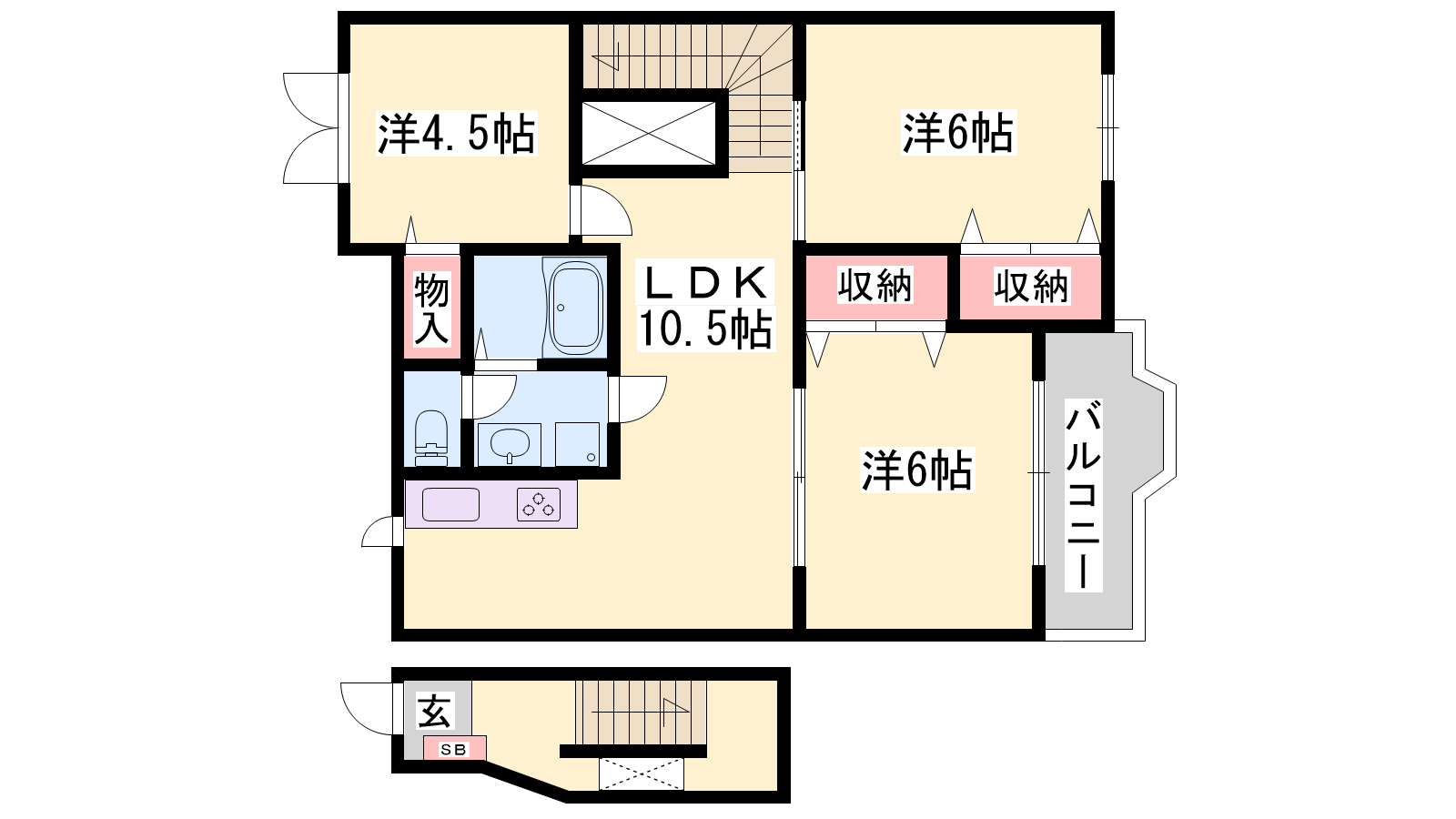 - LDK10.5帖、洋室6帖、洋室6帖、洋室4.5帖