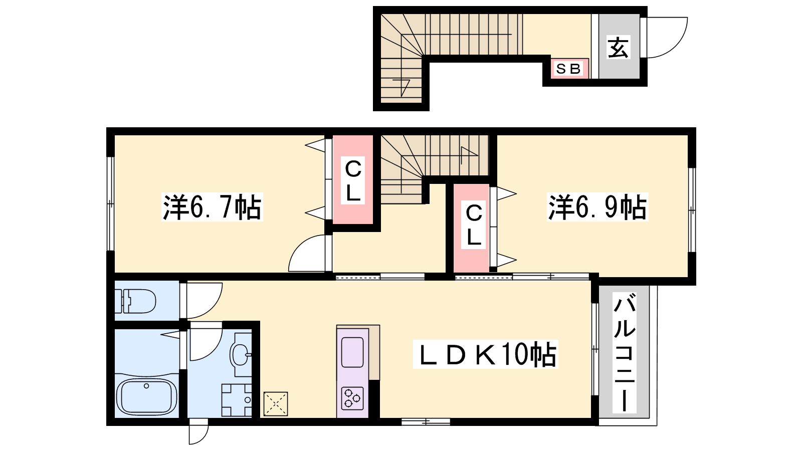 - LDK10帖、洋室6.9帖、洋室6.7帖