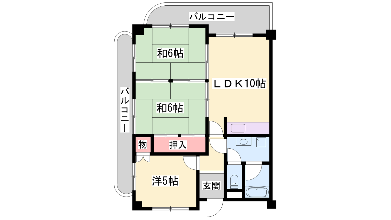 - LDK10帖、和室6帖、和室6帖、洋室5帖