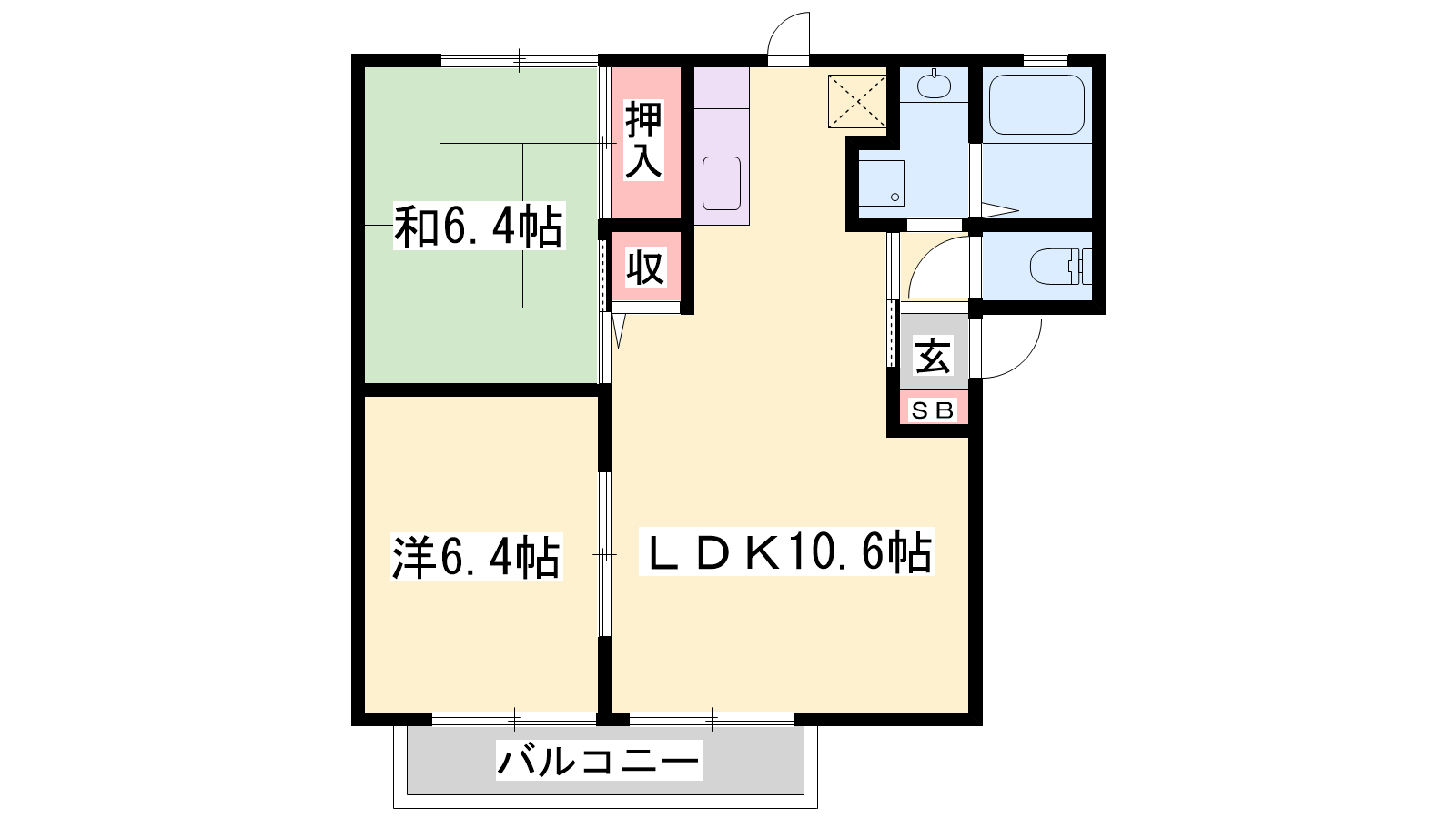 - LDK10.6帖、洋室6.4帖、和室6.4帖