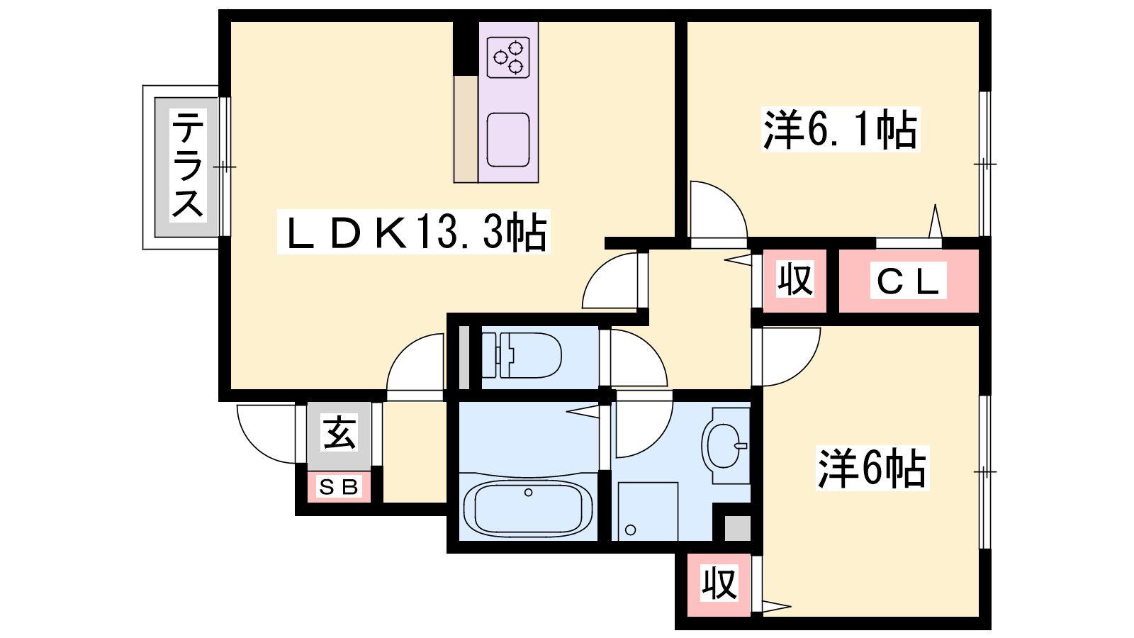 - LDK13.3帖、洋室6.1帖、洋室6帖
