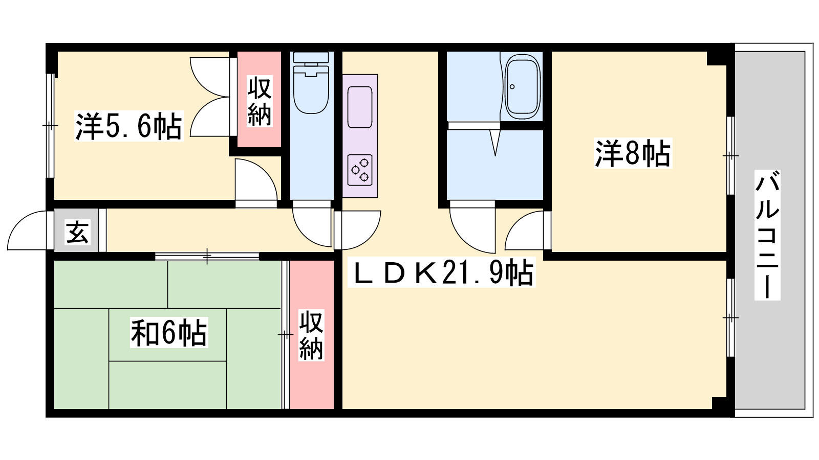 - LDK21.9帖、洋室8帖、洋室5.6帖、和室6帖