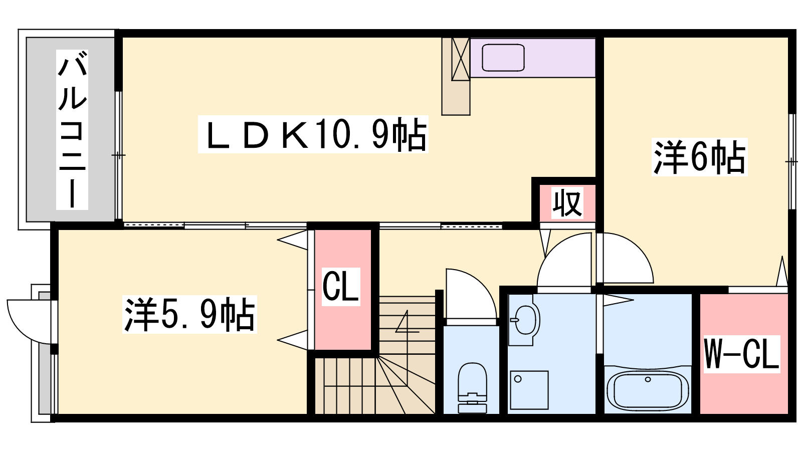 - LDK10.9帖、洋室6帖、洋室5.9帖