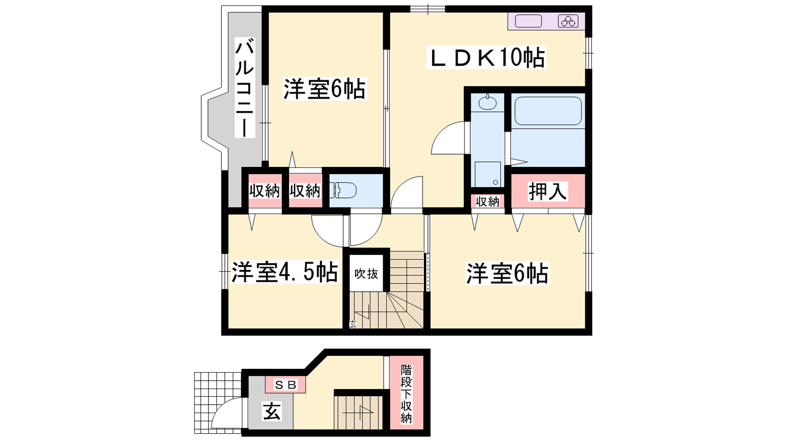- LDK10帖、洋室6帖、洋室6帖、洋室4.5帖