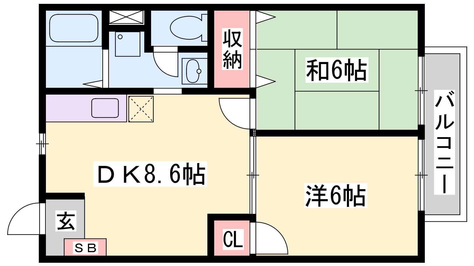- DK8.6帖、洋室6帖、和室6帖