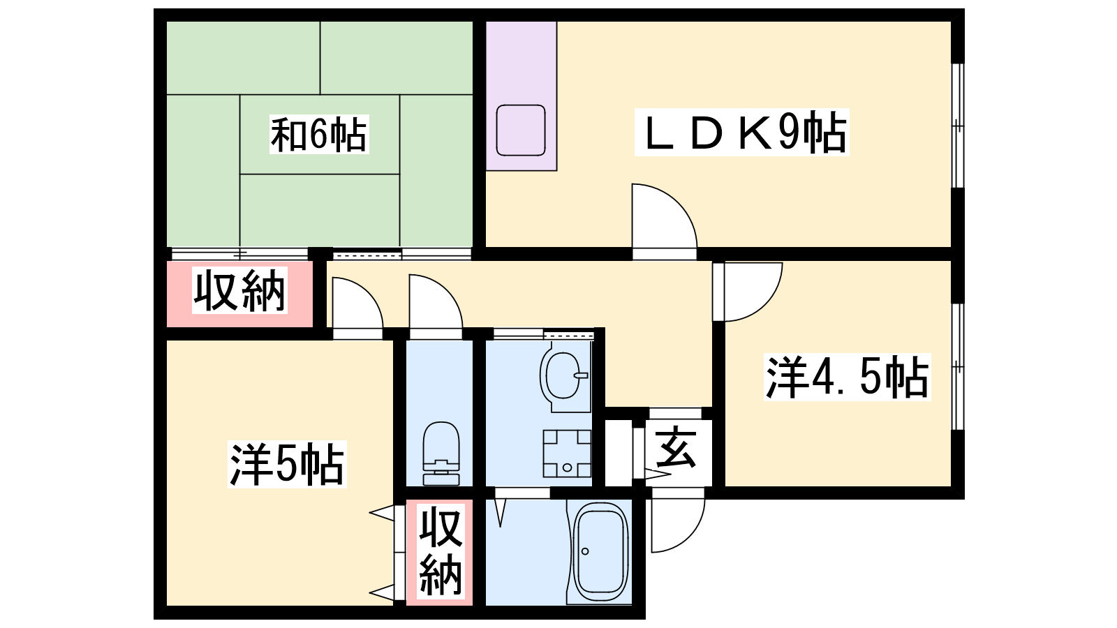 - LDK9帖、洋室5帖、洋室4.5帖、和室6帖