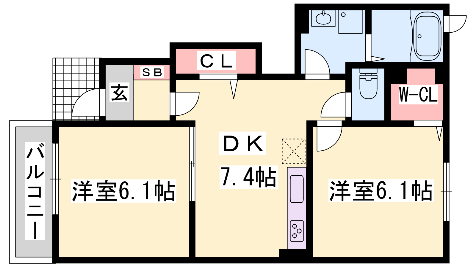 - DK7.4帖、洋室6.1帖、洋室6.1帖