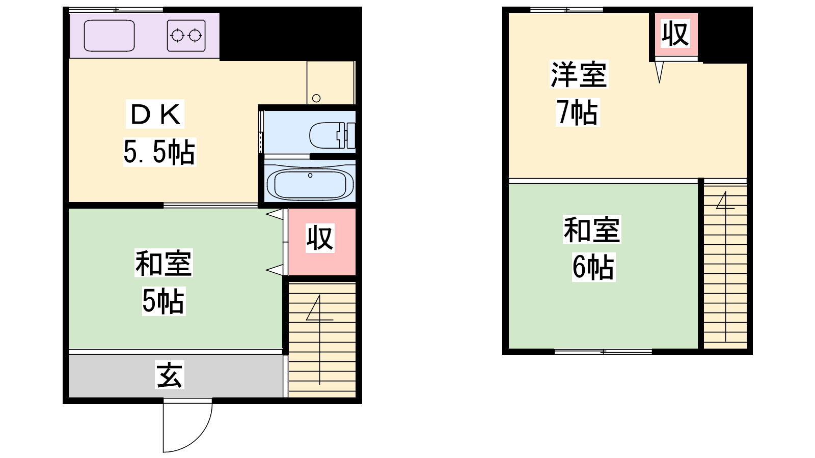 - DK5.5帖、和室5帖、洋室7帖、和室6帖