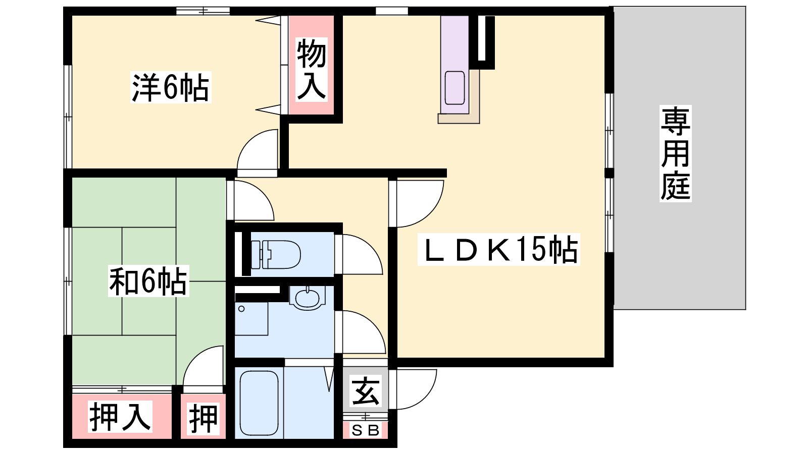 - LDK15帖、洋室6帖、和室6帖