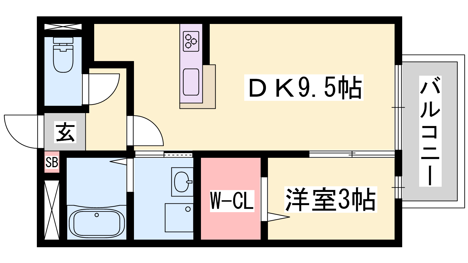 - DK9.5帖、洋室3帖