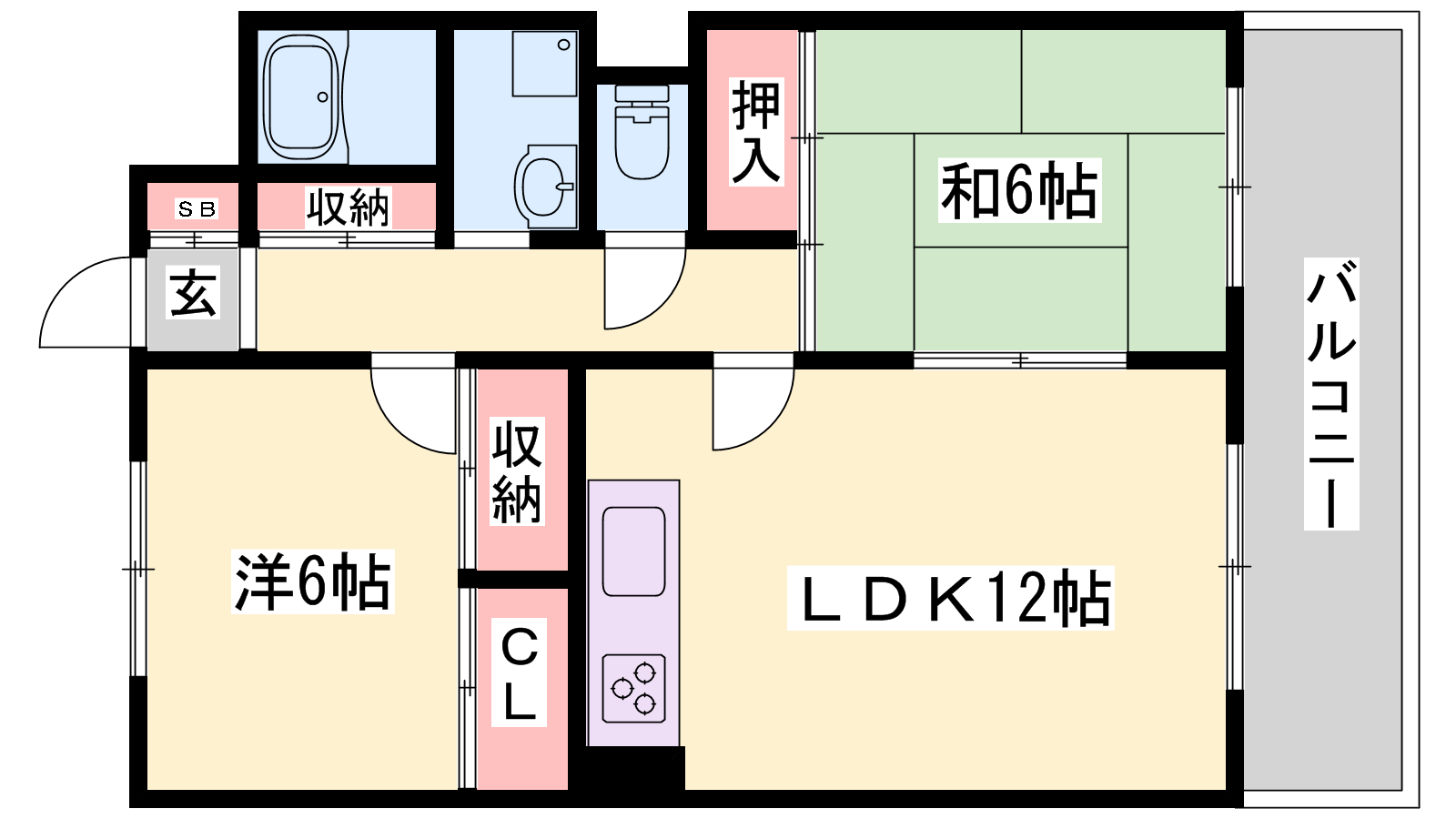 - LDK12帖、洋室6帖、和室6帖