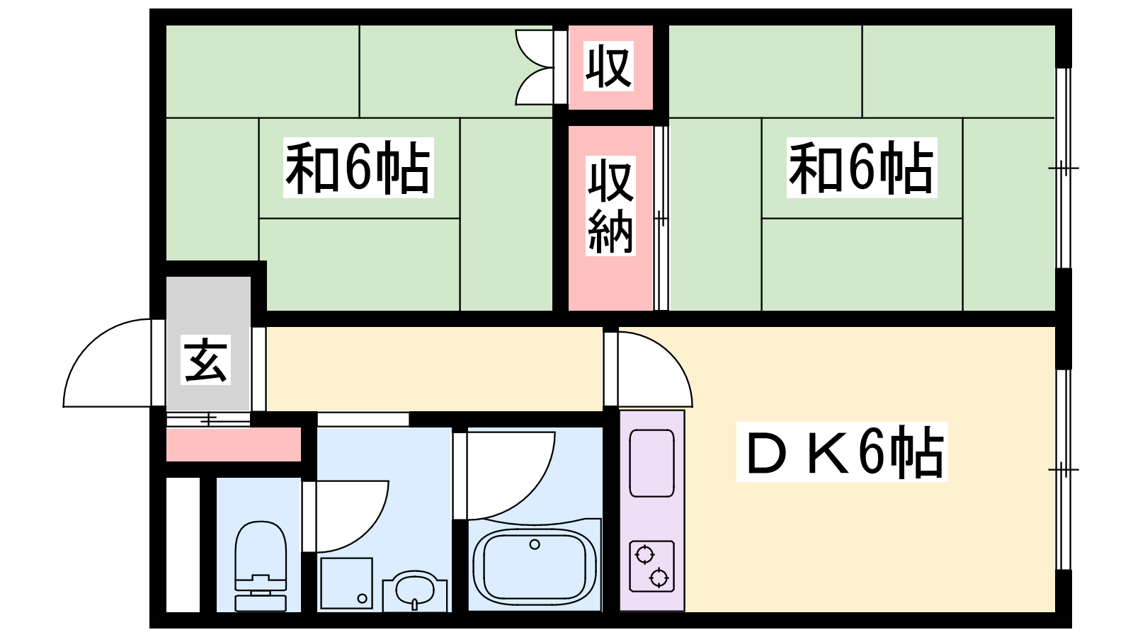 - DK6帖、和室6帖、和室6帖