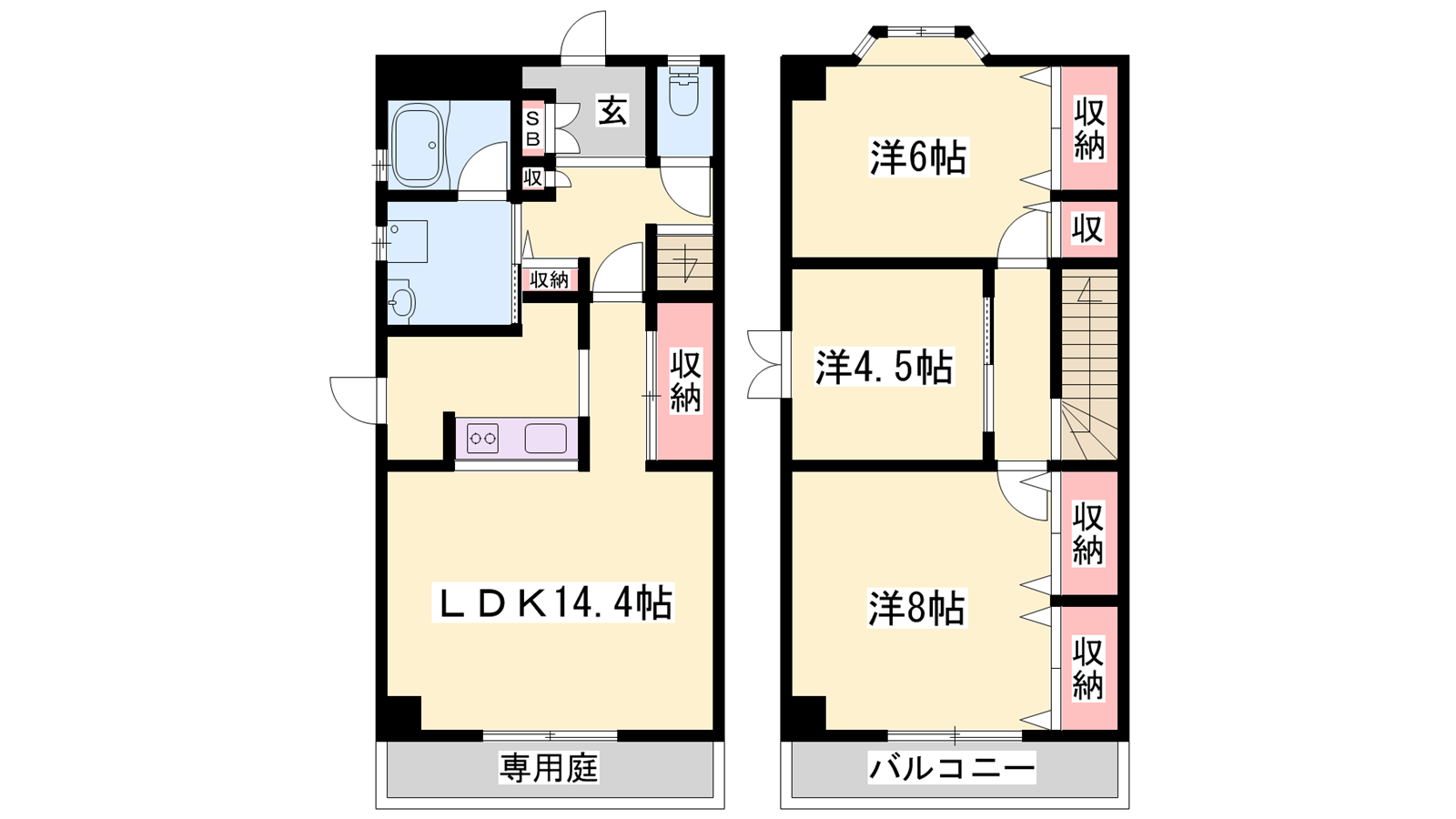 - LDK14.4帖、洋室8帖、洋室6帖、洋室4.5帖