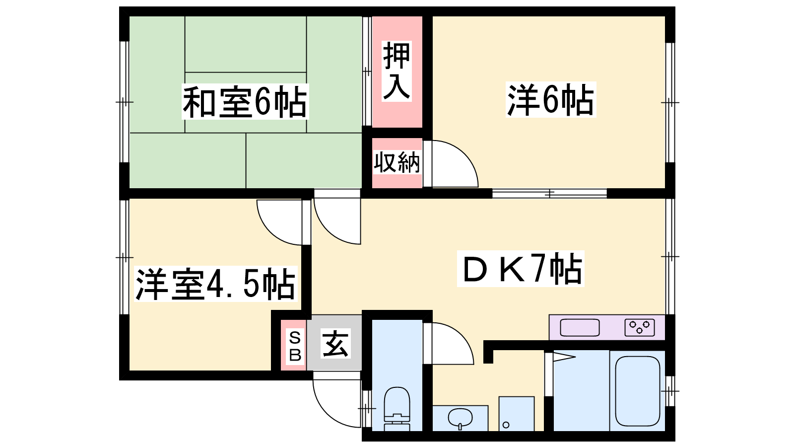 - DK7帖、洋室6帖、洋室4.5帖、和室6帖