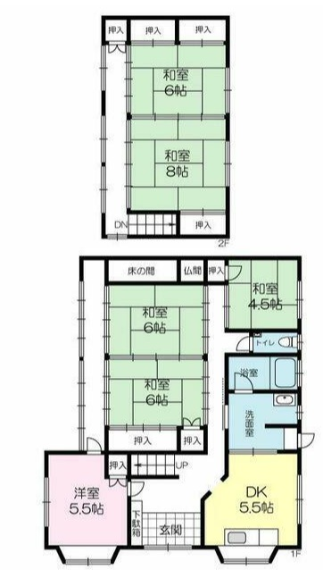 - DK5.5帖、洋室5.5帖、和室8帖、和室6帖、和室6帖、和室6帖、和室4.5帖