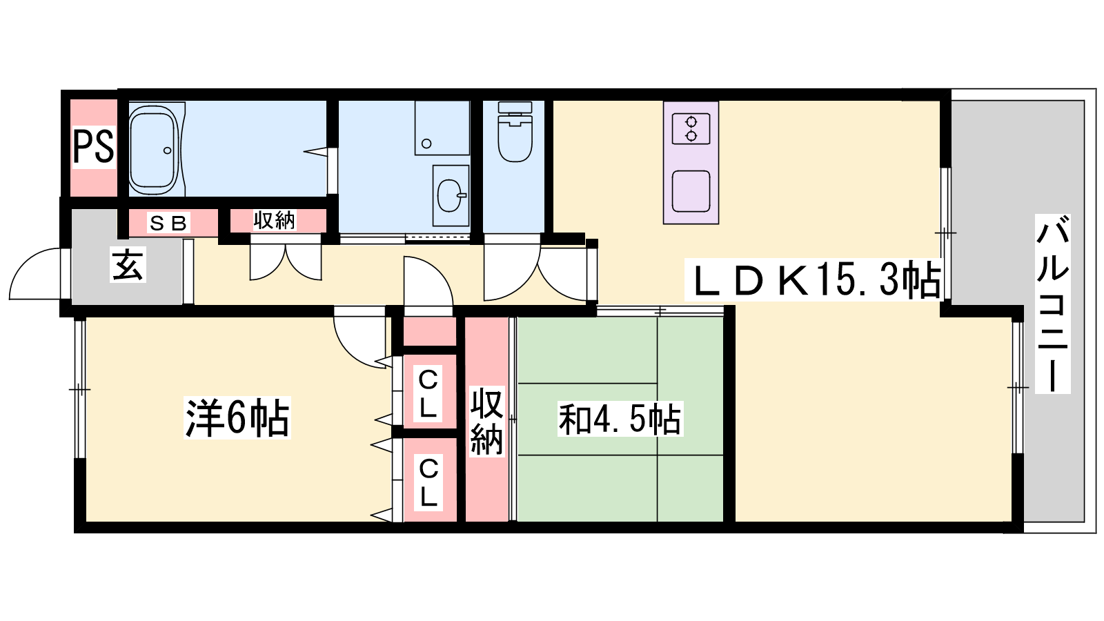 - LDK15.3帖、洋室6帖、洋室4.5帖