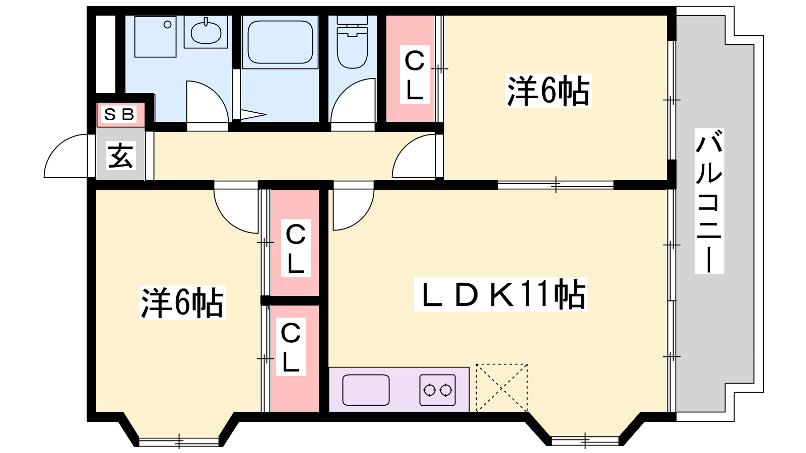 - LDK11帖、洋室6帖、洋室6帖