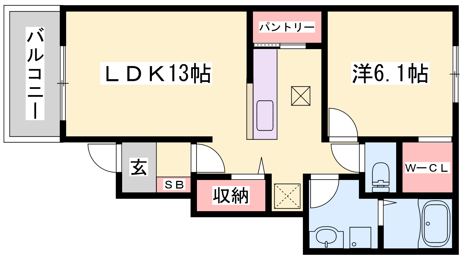 - LDK13帖、洋室6.1帖