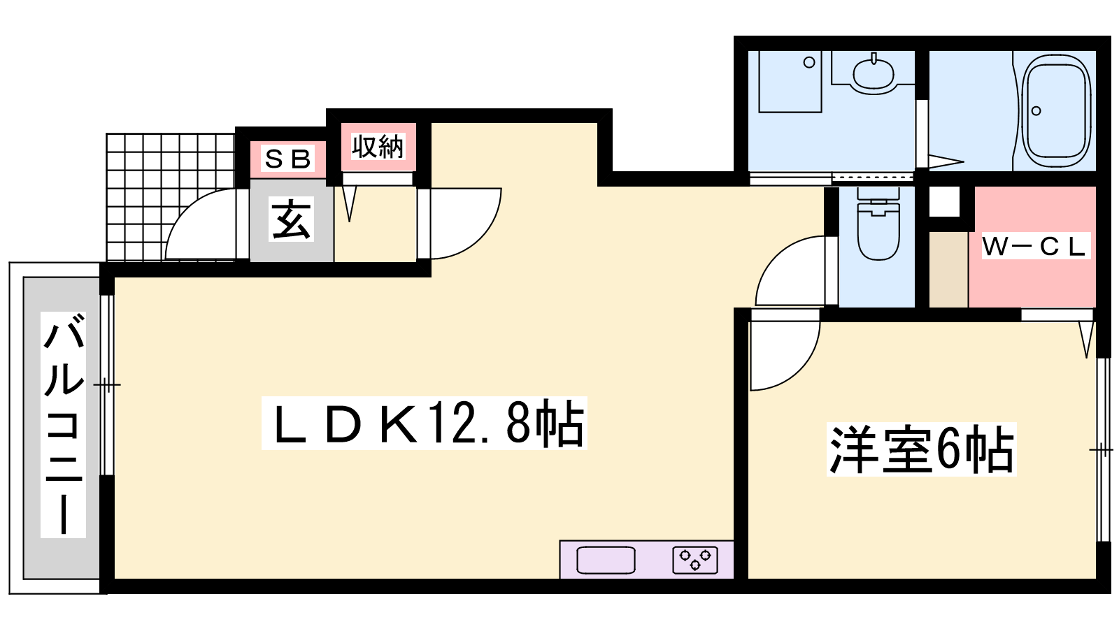 - LDK12.8帖、洋室6帖