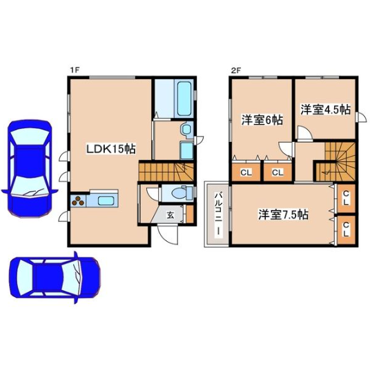 - LDK15帖、洋室7.5帖、洋室6帖、洋室4.5帖