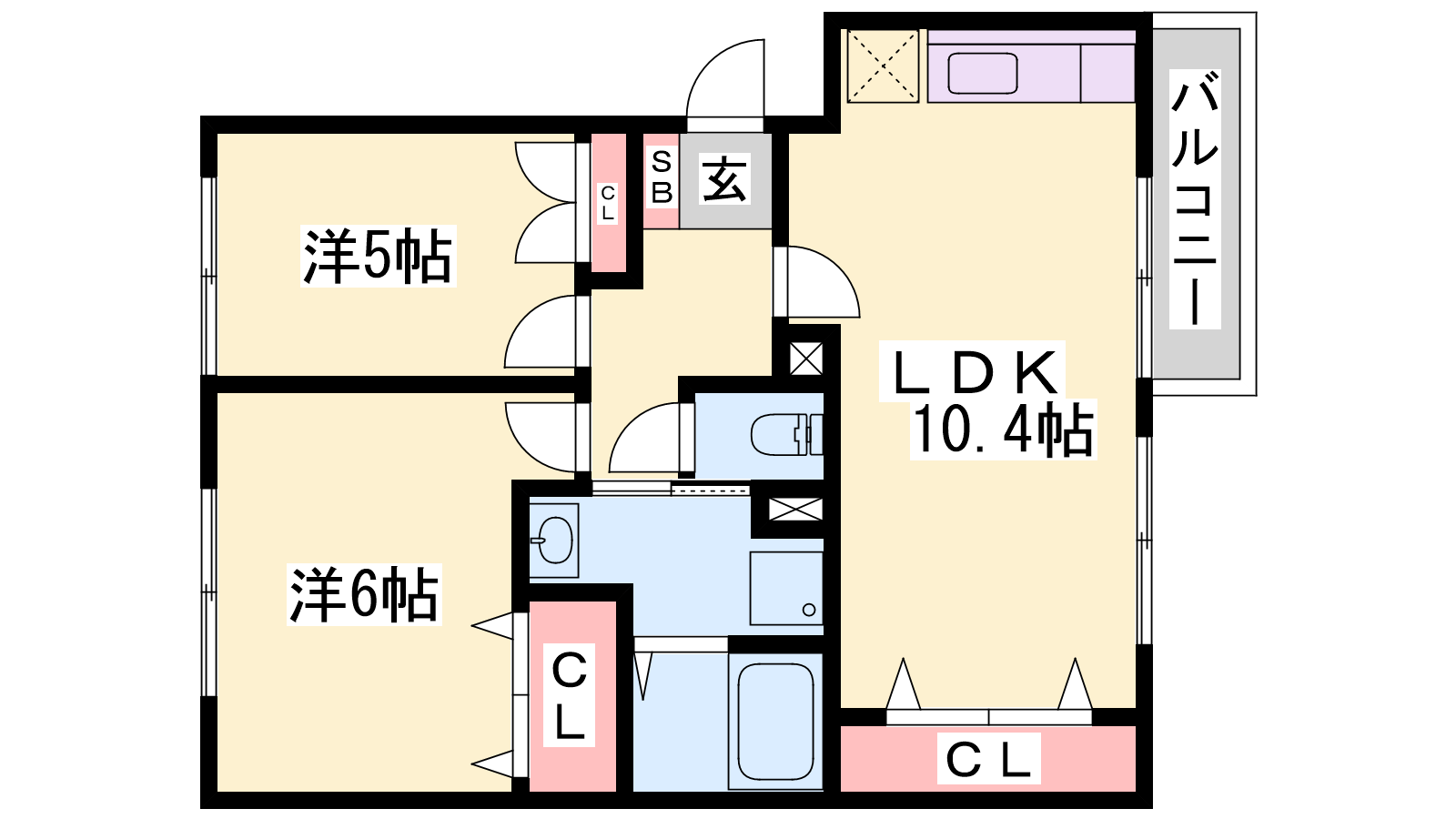 - LDK10.4帖、洋室6帖、洋室5帖